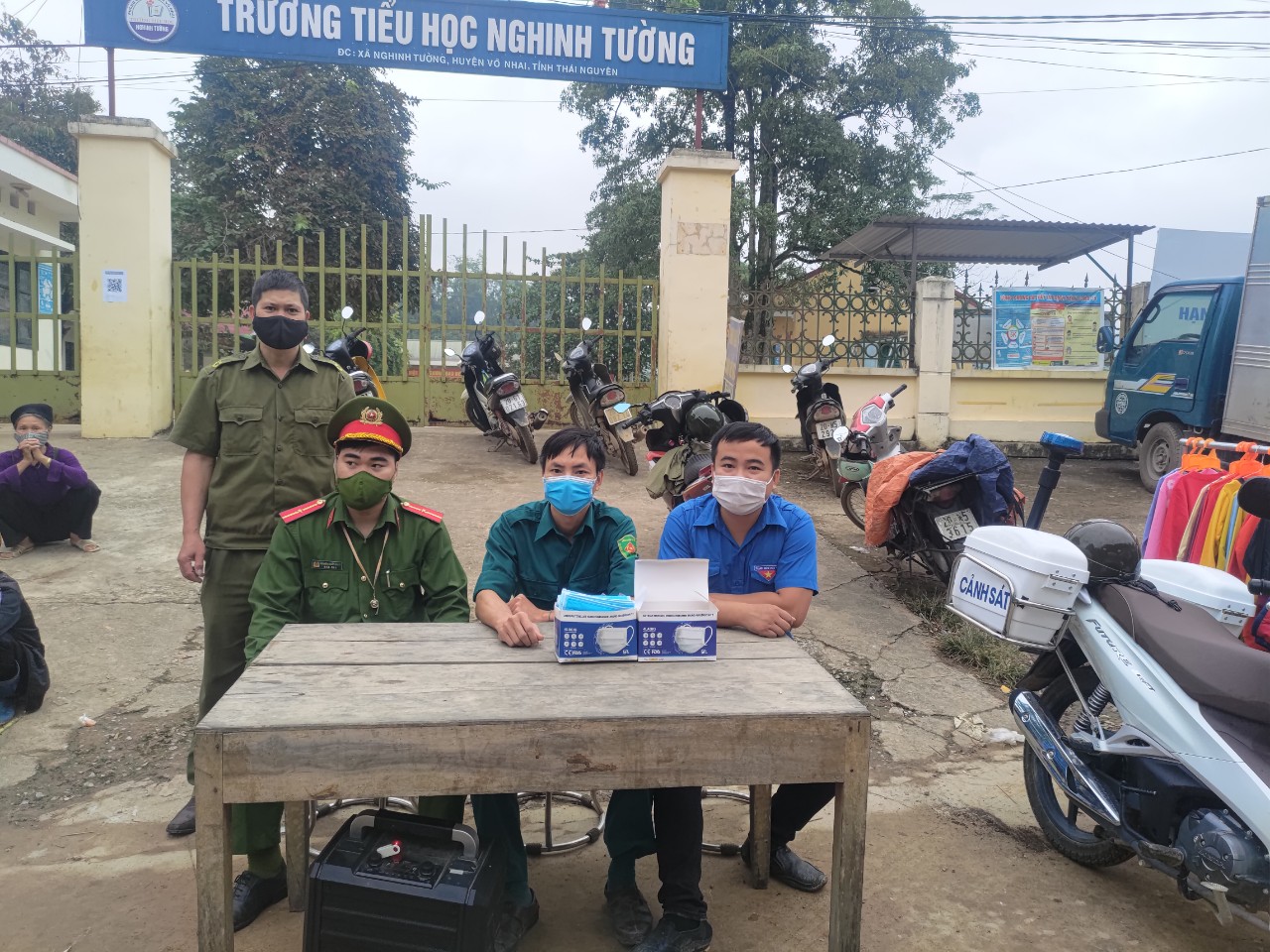 Ngoài ra tại các phiên chợ, Đoàn thanh niên, công an xã, quân sự phối hợp cùng CB văn hóa tổ chức tuyên truyền tại khu vực chợ giúp người dân sát khuẩn tay trước khi vào chợ cũng như nhắc nhở, xử lý những trường hợp không đeo khẩu trang đúng nơi quy định.